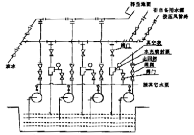 單臺(tái)水泵的安裝,每臺(tái)噴射泵只對(duì)該臺(tái)水泵進(jìn)行吸氣吸上引水。