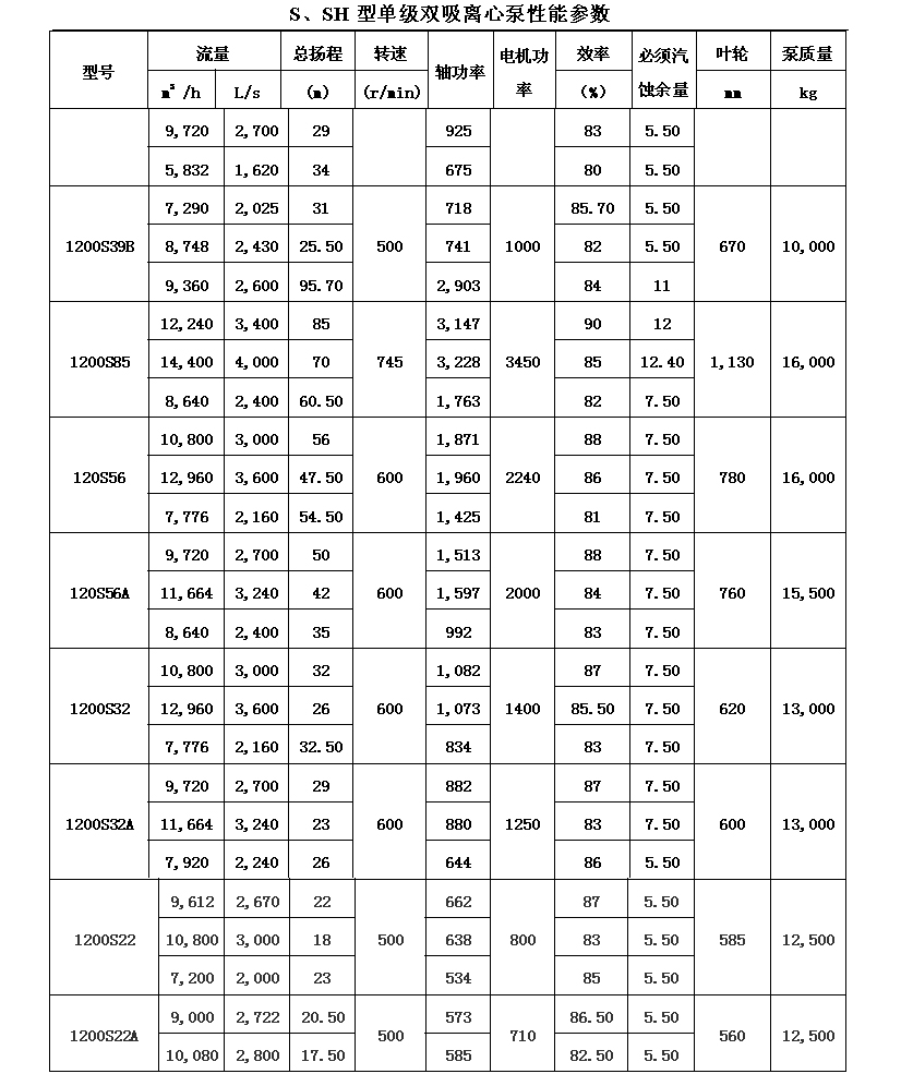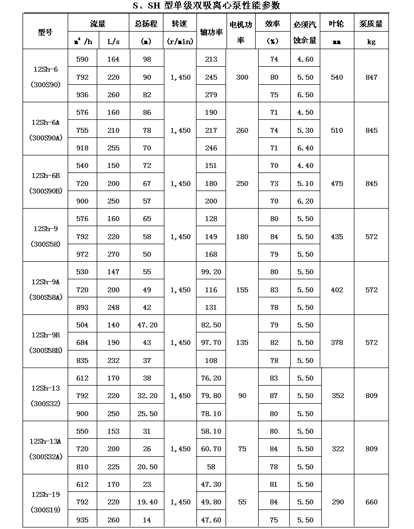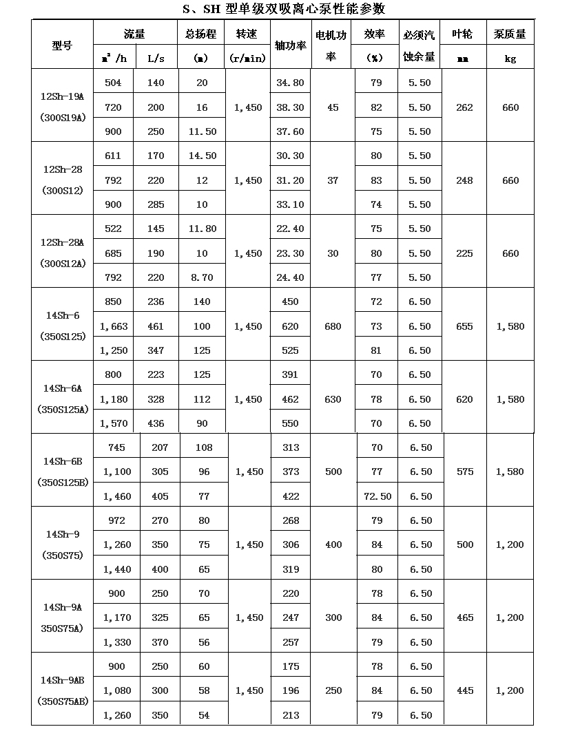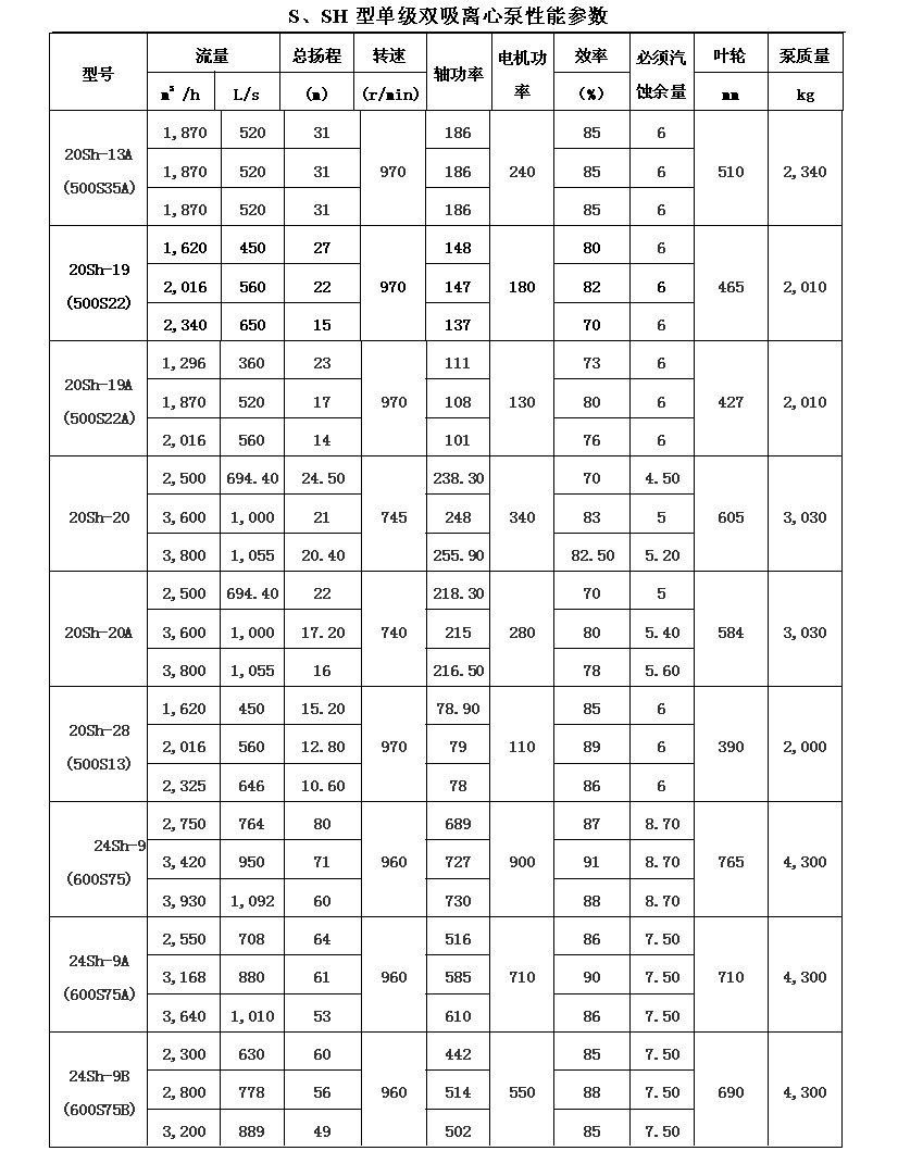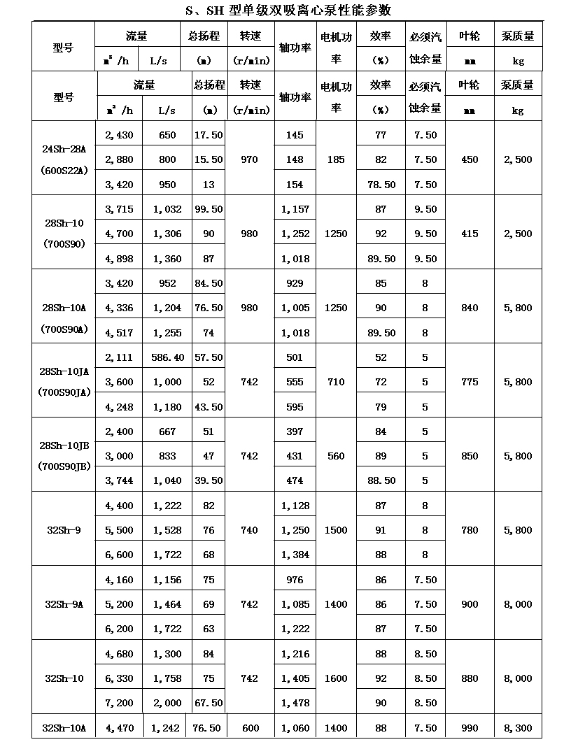 吸離心泵、S,SH型單級(jí)雙吸泵殼中開(kāi)之離心泵,供抽送清水或物理化學(xué)類(lèi)似于水的其它液體之用。被輸送液體溫度不得高于80℃。